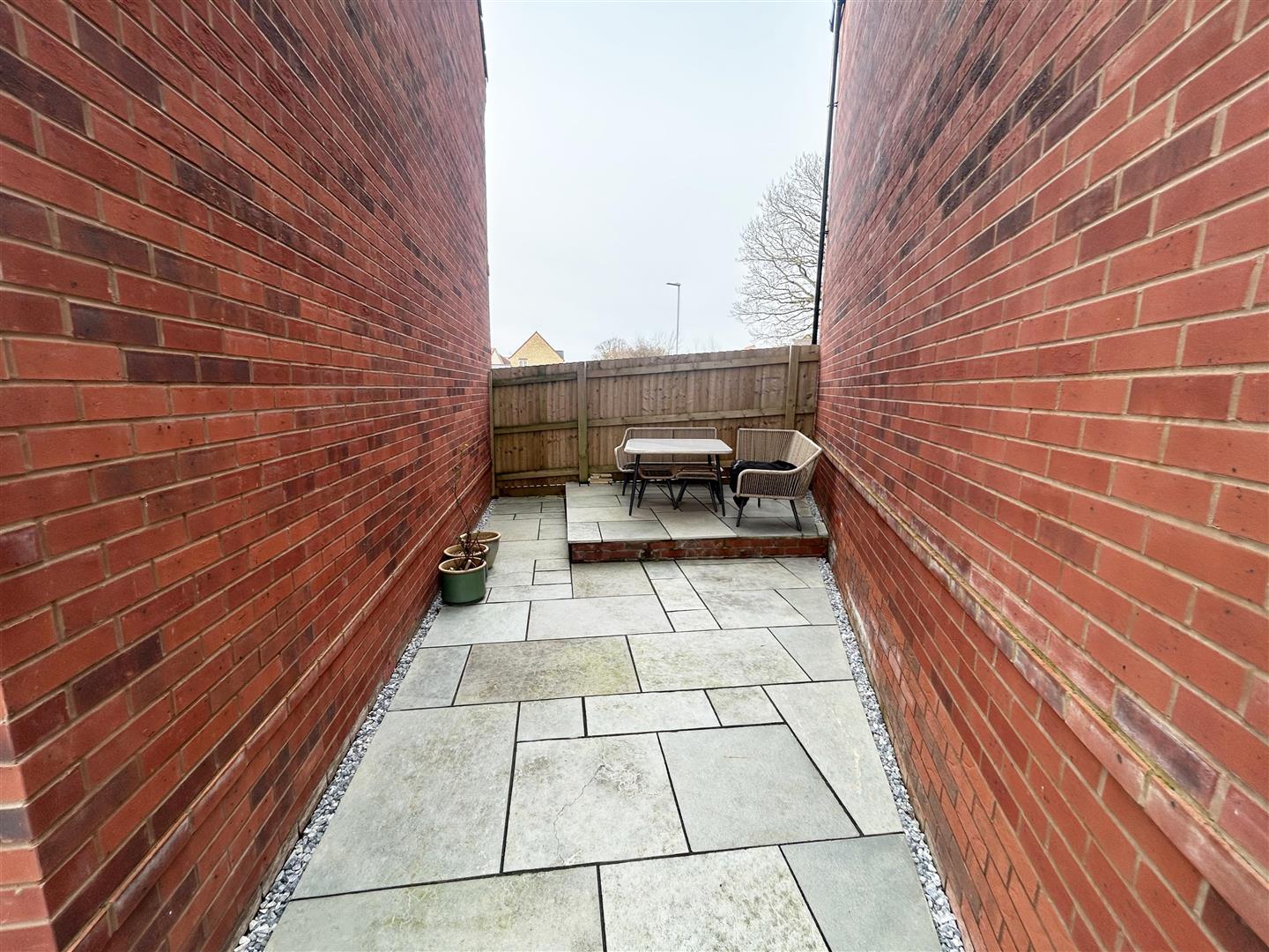 Fully enclosed with timber gate leading to garage and parking area. Mainly laid to lawn with patio area adjacent to property.