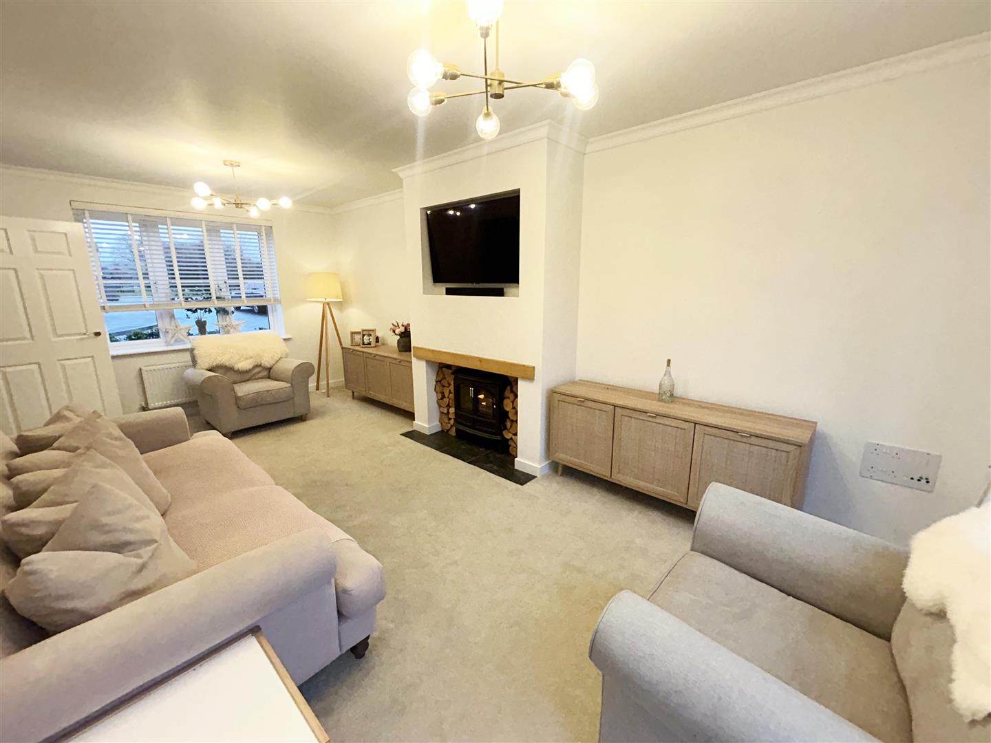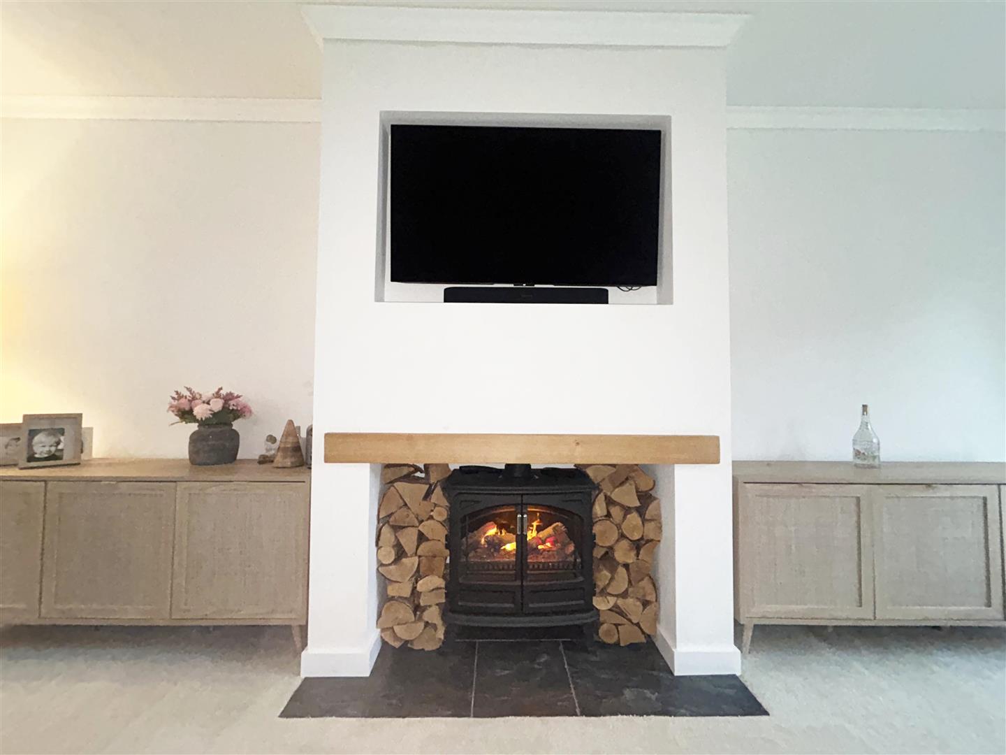 Double glazed window to front aspect. Feature fireplace with wood burner inset. Double glazed French doors to rear aspect. Two radiators.