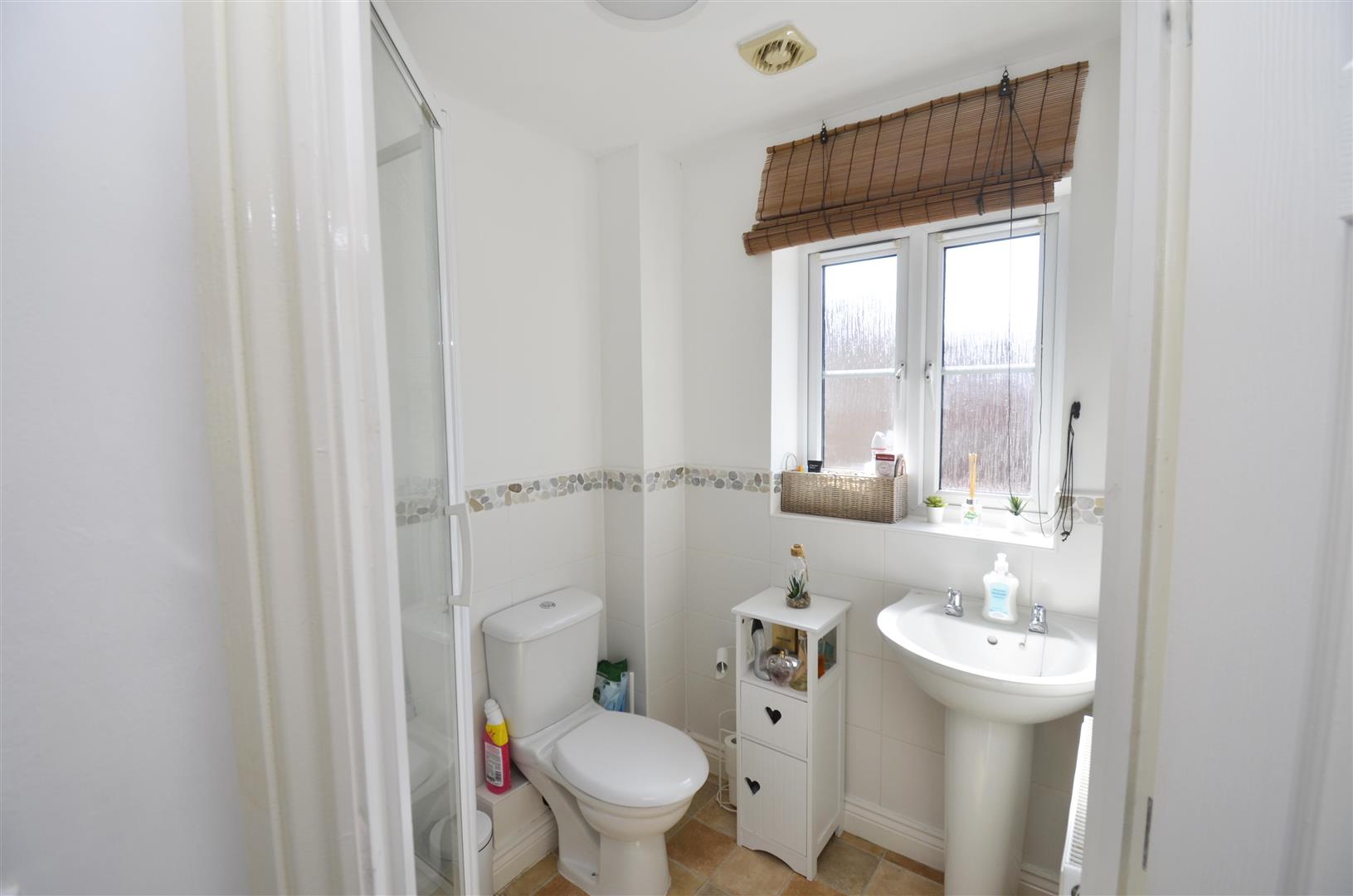 Obscure front aspect double glazed window. Fitted with a three piece suite comprising tiled shower cubicle with shower, pedestal wash hand basin and close coupled WC with push button flush, radiator.
