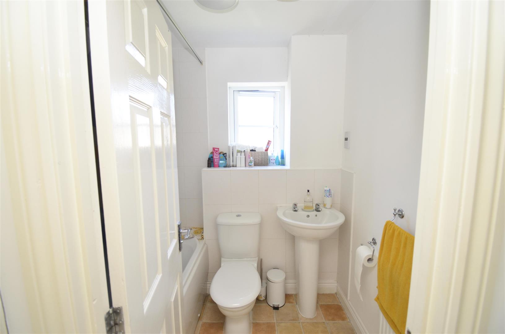 Double glazed obscure window to side aspect. Fitted with a three piece white suite comprising panelled bath with shower attachment over, pedestal wash hand basin and close coupled WC, part tiled walls, radiator.