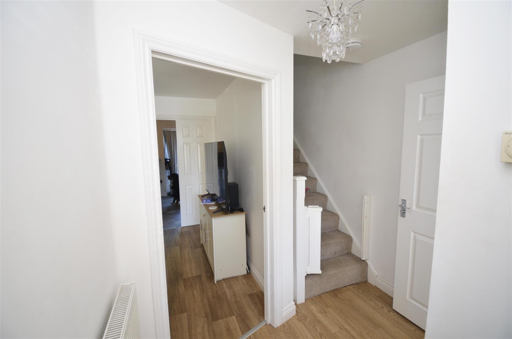 Staircase rising to first floor, radiator, doors to living room and cloakroom.