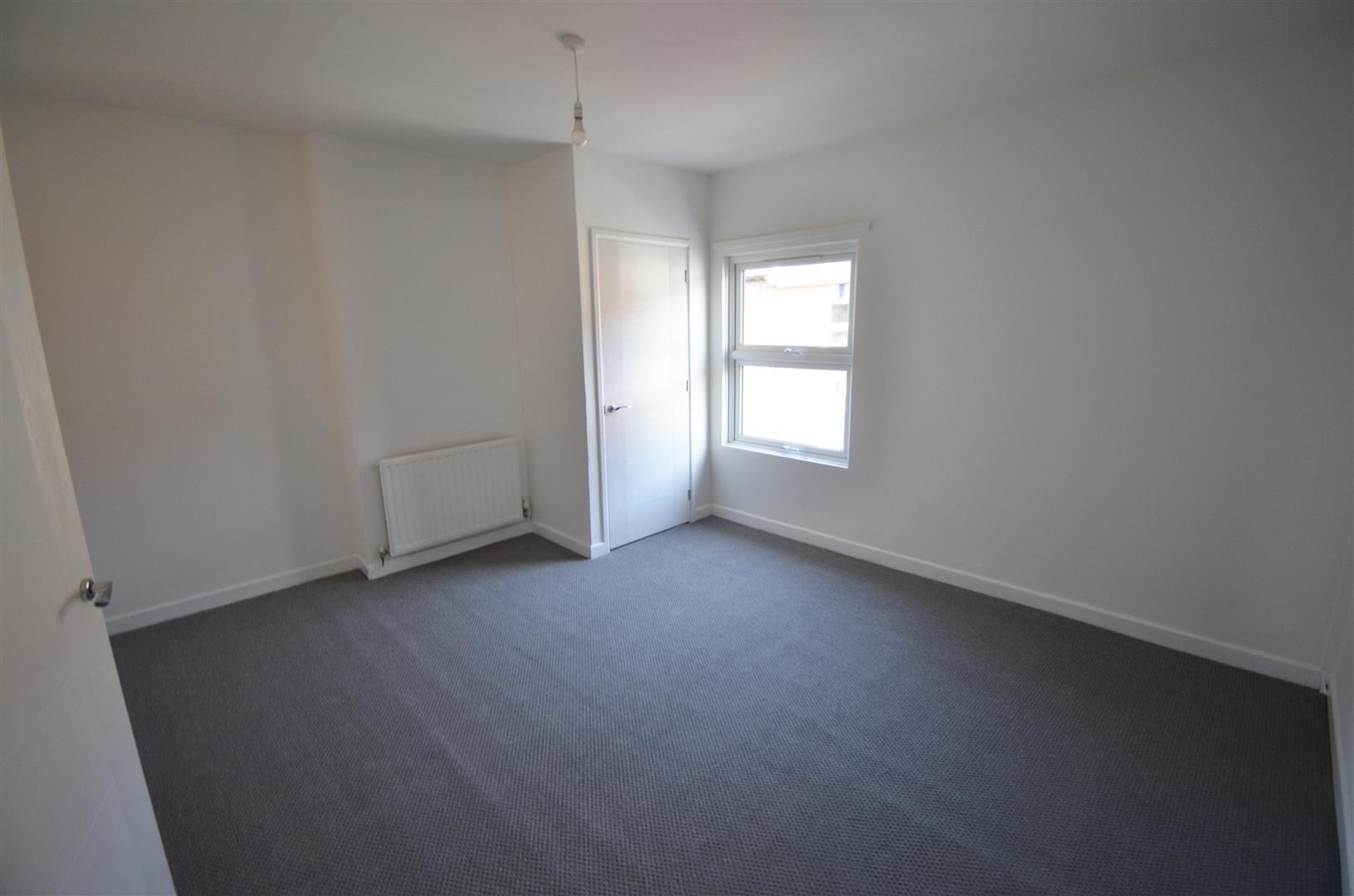 Front aspect double glazed window, radiator, built-in storage cupboard housing combi boiler.