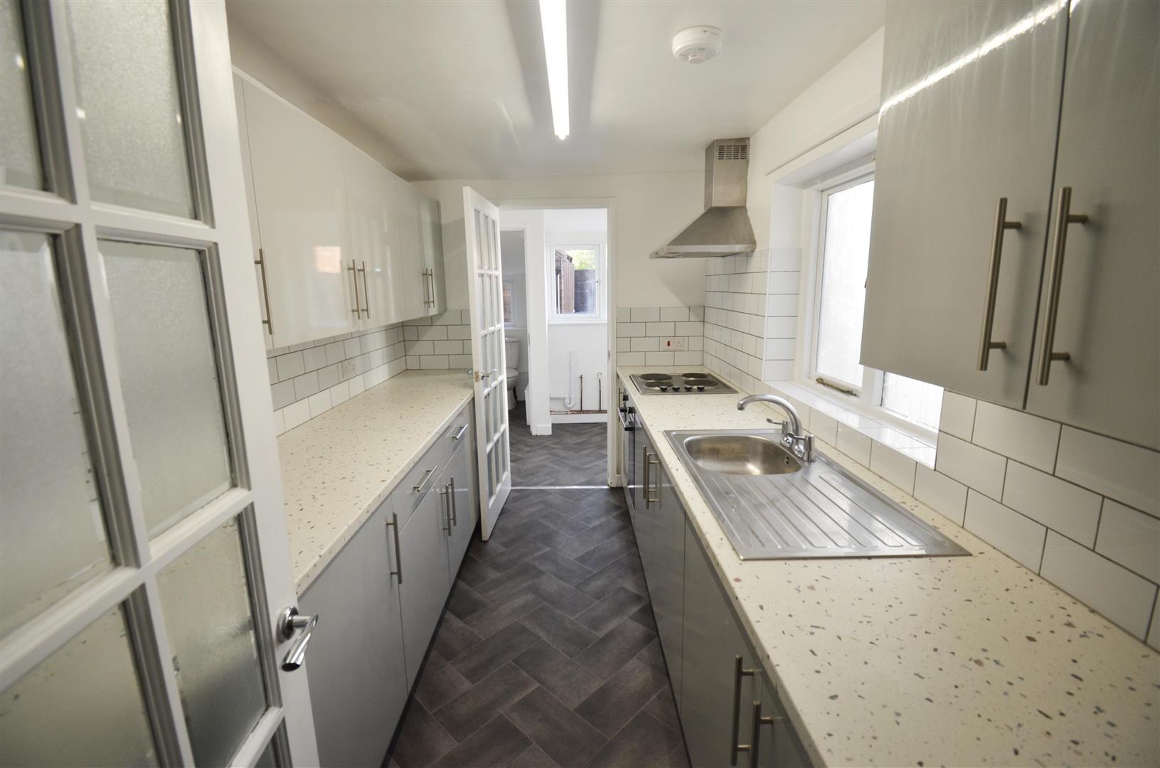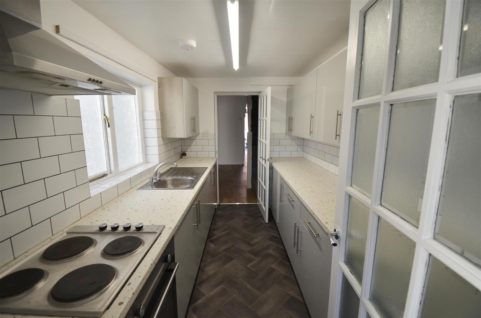 Space and plumbing for a washing machine, space for fridge. Door to cloakroom. Double glazed door to the garden.