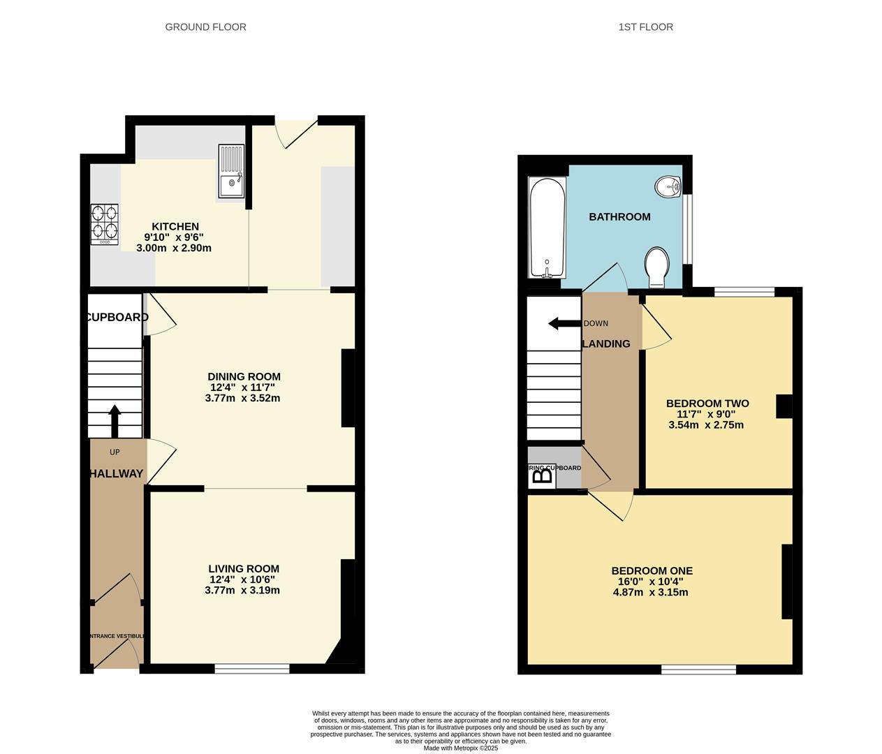 Tiled flooring, electric meter and consumer unit, obscure half glazed door to: