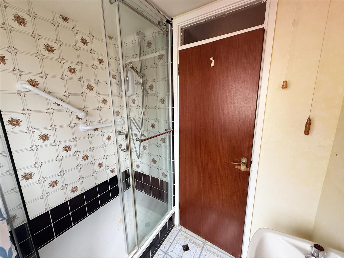 Obscure front aspect double glazed window. Fitted with a three piece suite comprising large shower cubicle with electric shower over, pedestal wash hand basin and WC. Partially tiled walls, radiator.