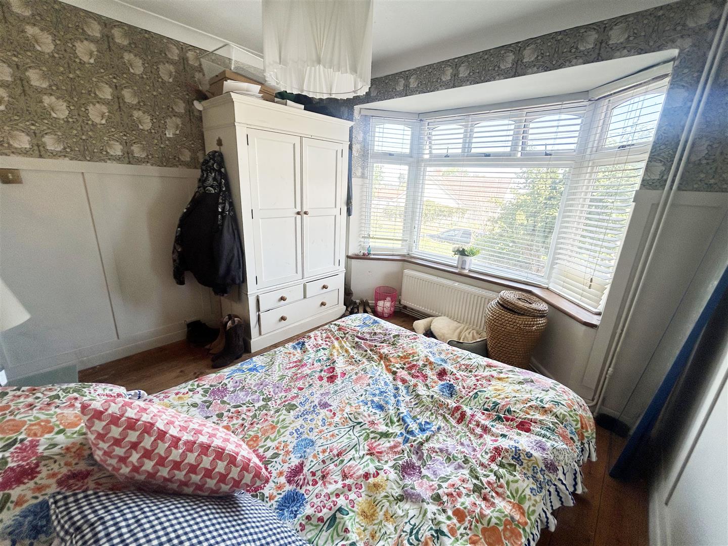Front aspect bay double glazed window, radiator, stripped floorboards.