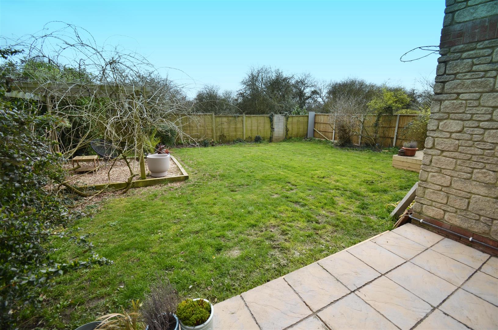 Fully enclosed with timber gate to side aspect. mainly laid to lawn with mature shrub borders.
