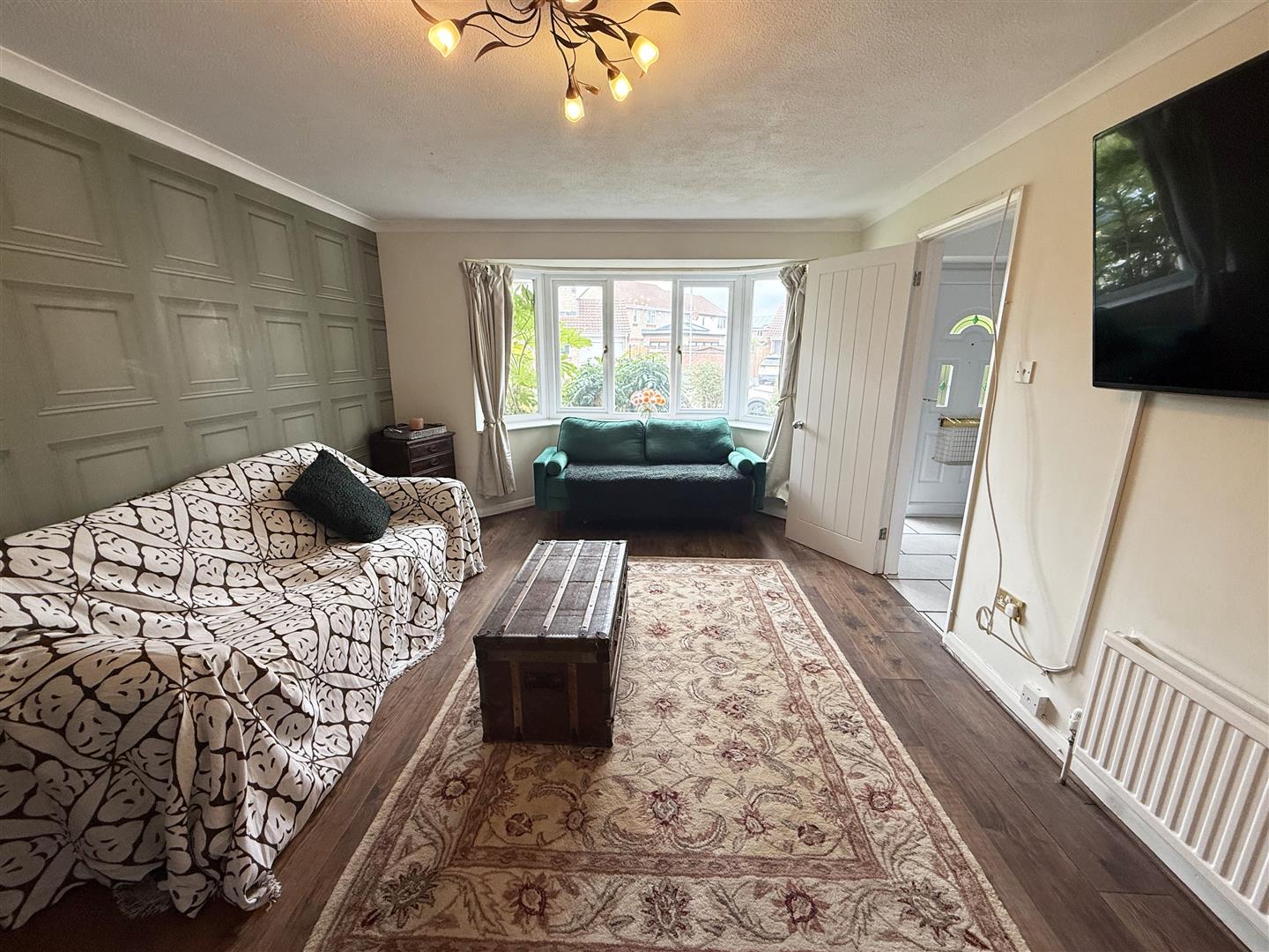 Front aspect bay double glazed window, radiator, wood effect flooring. Double doors to dining room.