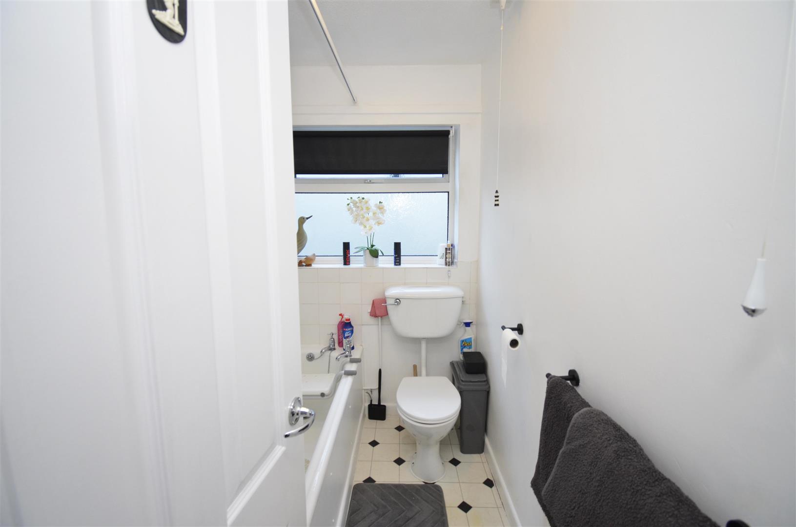 Obscure side aspect double glazed window. Fitted with a three piece suite comprising panelled bath, pedestal wash hand basin and WC, partially tiled walls, radiator.