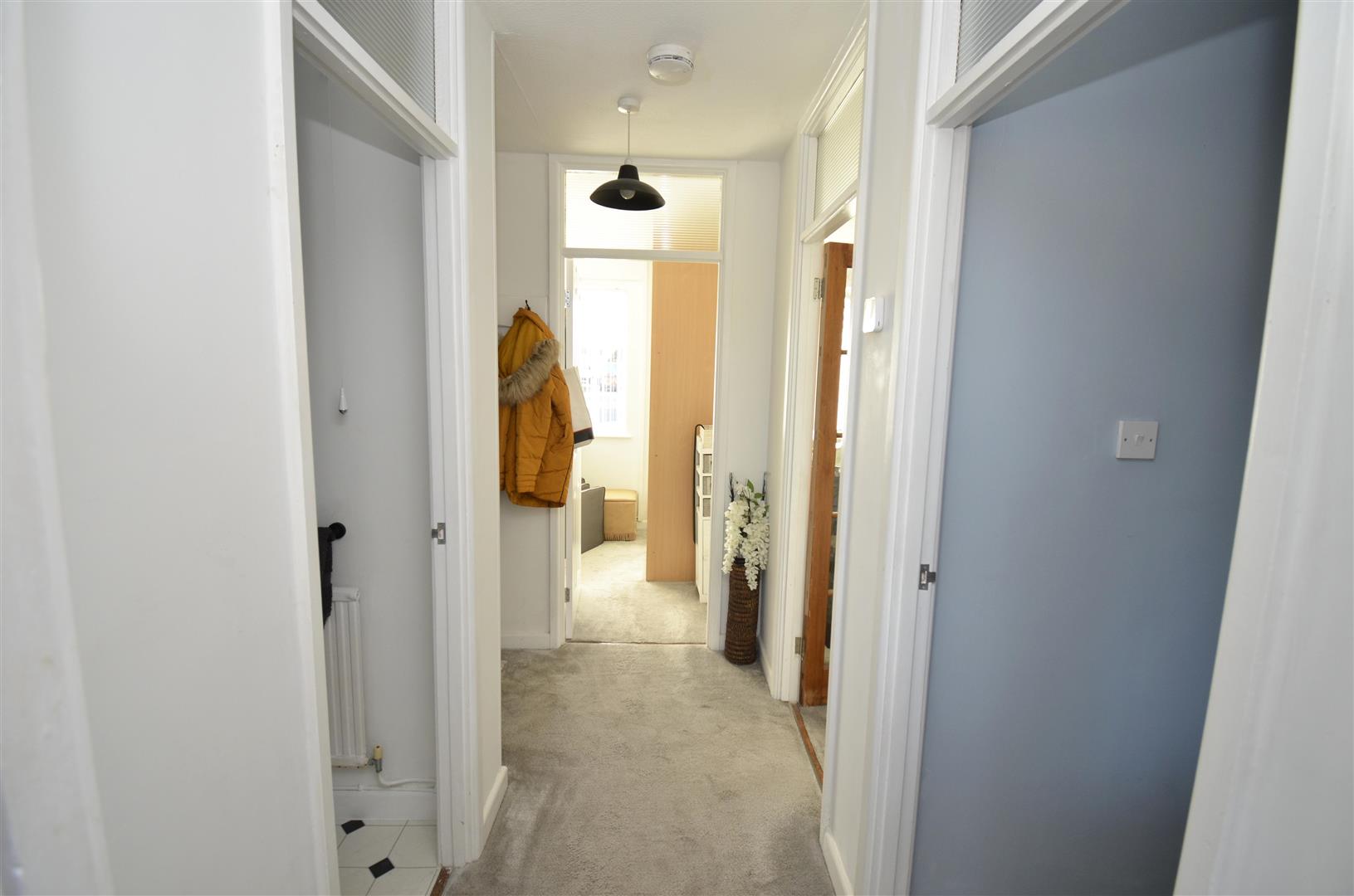 Fitted with a matching range of wall, base & drawer units with work surfaces over & sink & drainer unit inset. Integrated slip and slide Neff oven with microwave over, integrated hob with extractor over. Integrated fridge/ freezer, integrated washing machine and integrated dishwasher. Tiled splashbacks. Double glazed door to the lobby. Wall mounted 'Ideal' boiler concealed in the cupboard. Radiator. Double glazed door to the lobby, double glazed door to the hall.
