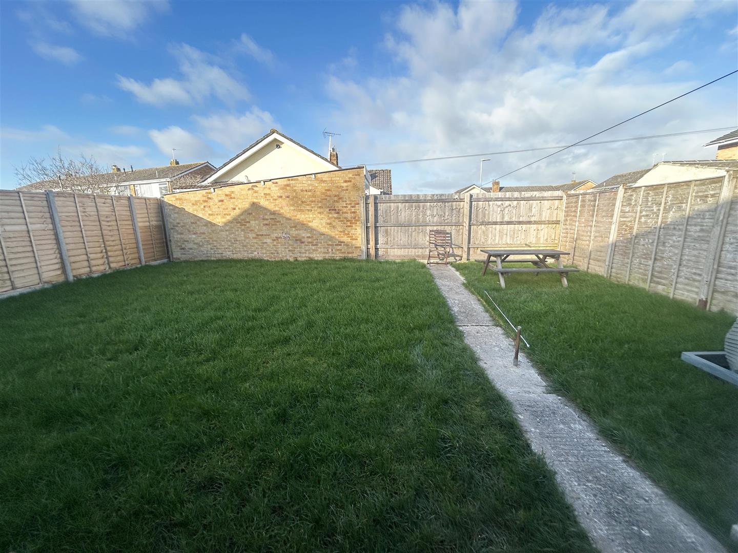 Fully enclosed and laid to lawn.