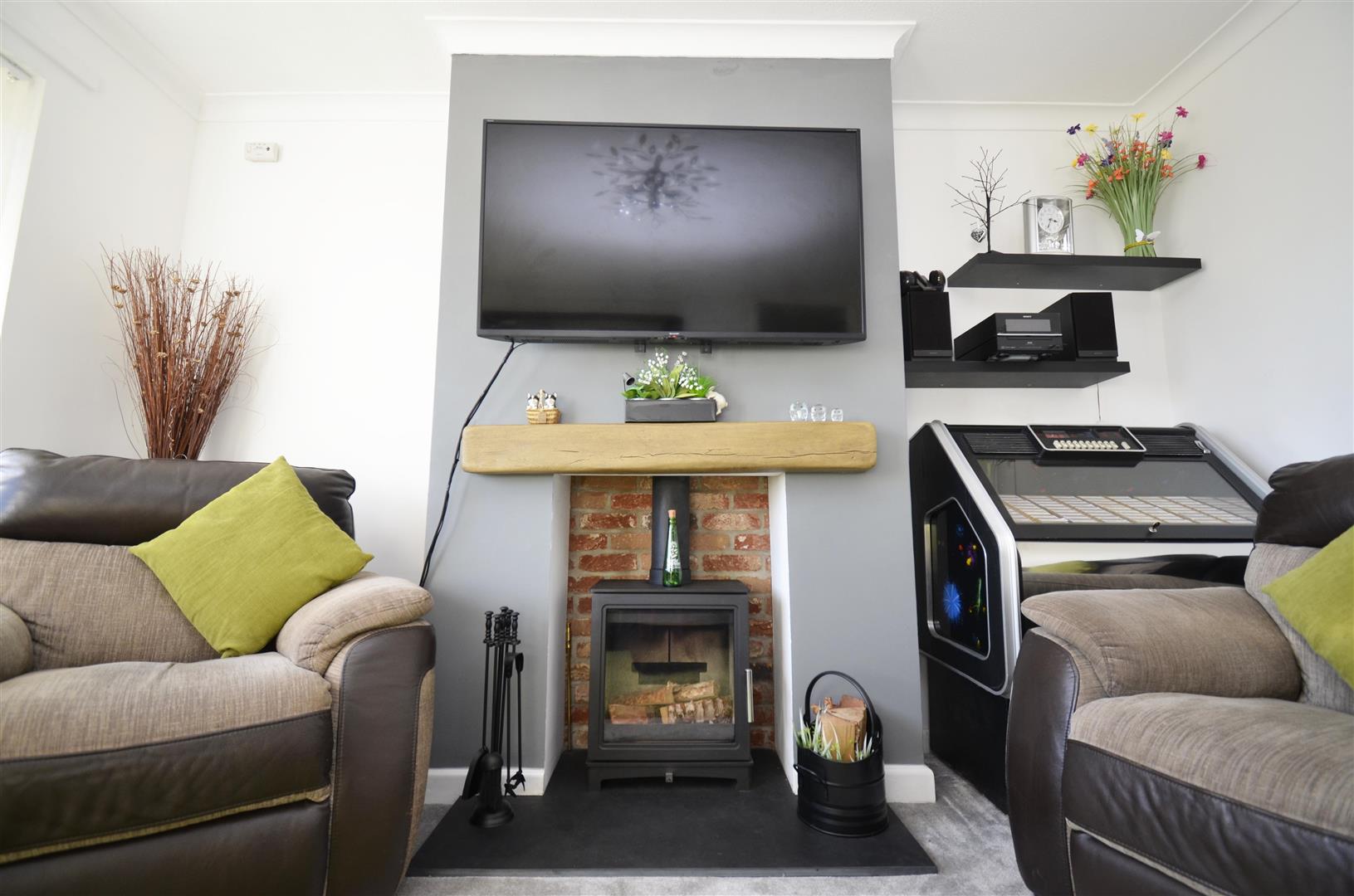Feature fireplace with wood burner inset. Double glazed window to front aspect. Radiator.