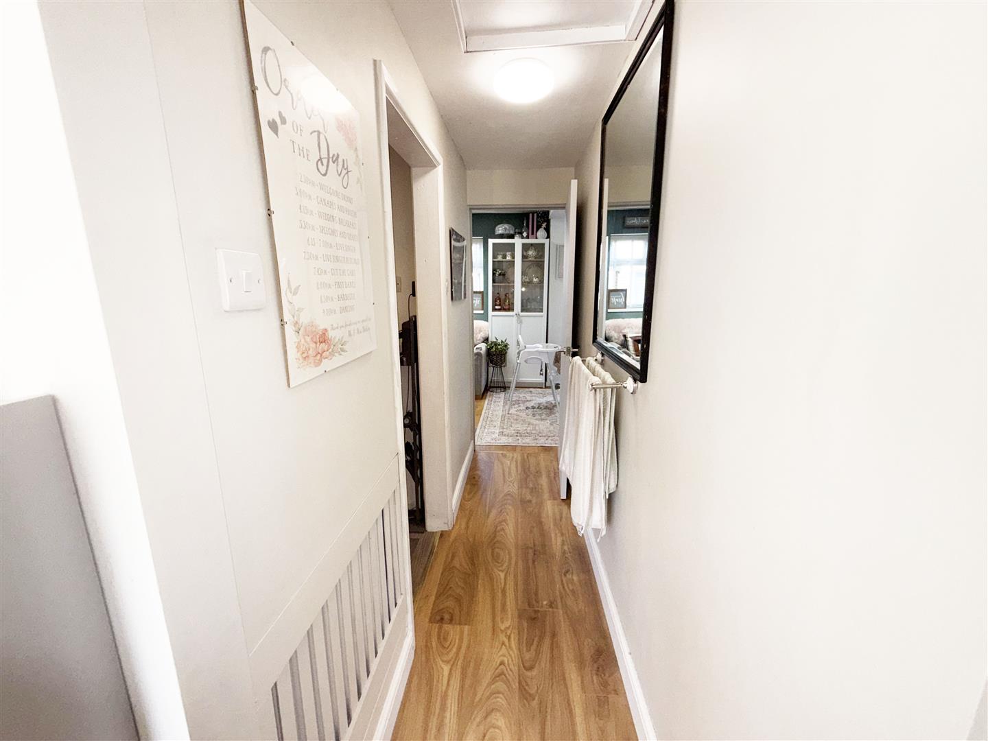 Wood effect flooring, opening to utility and study.