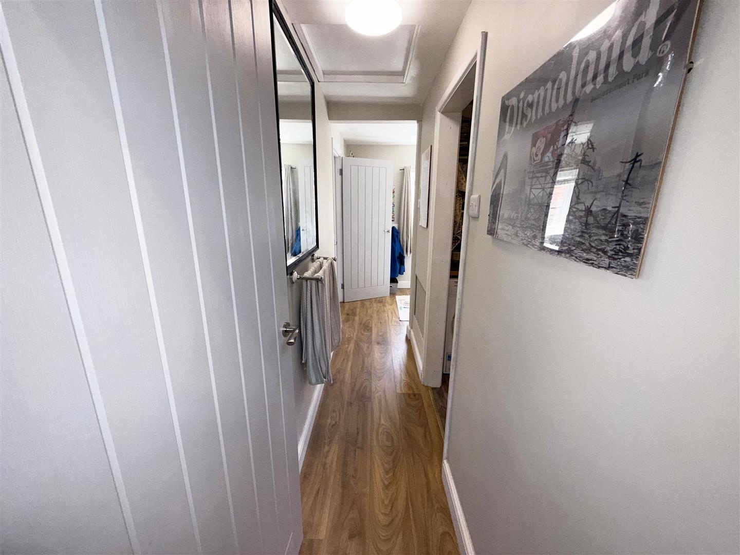 Loft hatch. Airing cupboard. Doors to bedrooms and bathroom.