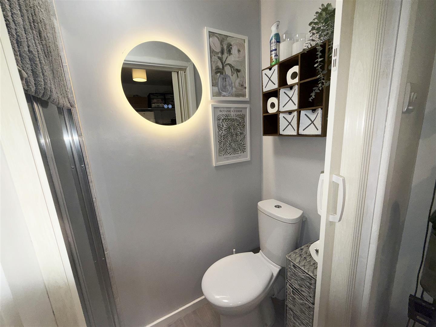 Fitted with a two piece suite comprising shower cubicle with shower over and W.C. Wood effect flooring.