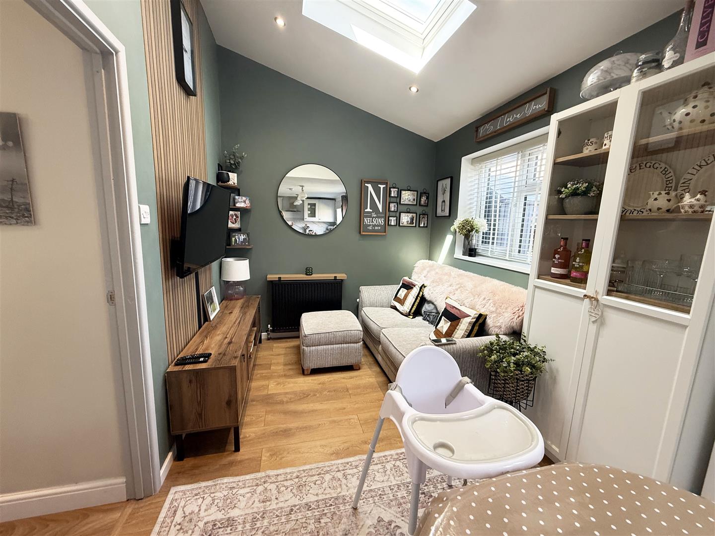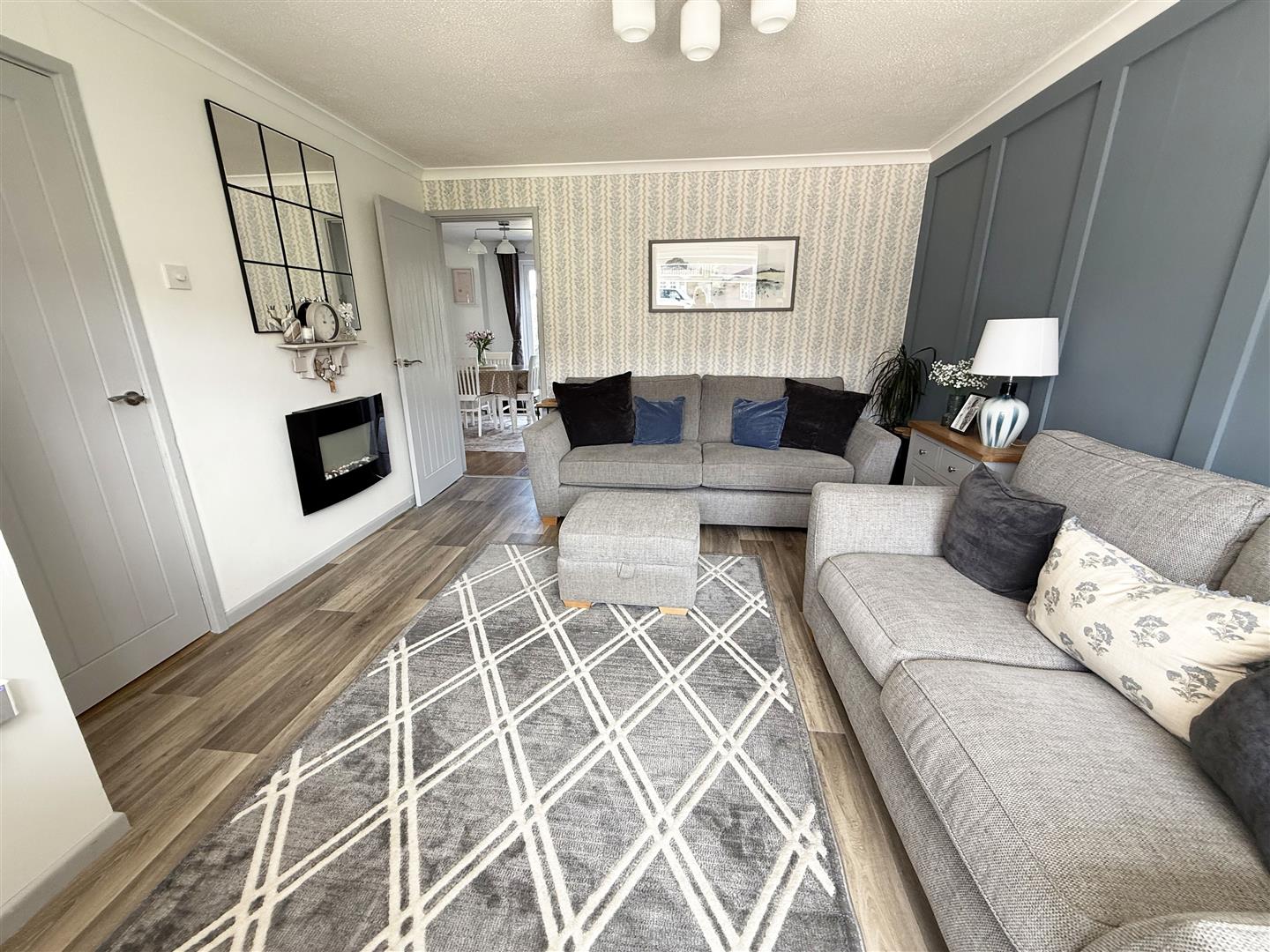 Double glazed window to front aspect. Feature electric fireplace. Radiator, wood effect flooring, part panelled walls. Door to Kitchen/ Diner/ Snug.