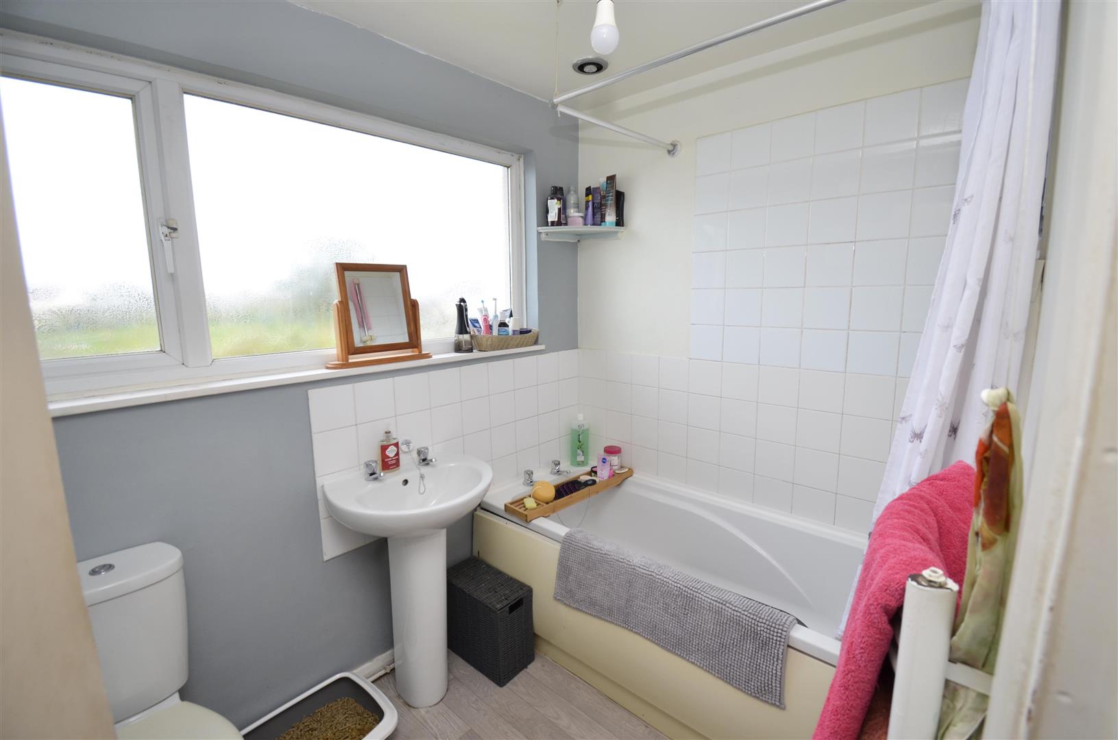 Obscure rear aspect double glazed window. Fitted with a three piece suite comprising panelled bath with electric shower over, pedestal wash hand basin & WC. Partially tiled walls, wood effect flooring. Heated towel rail.