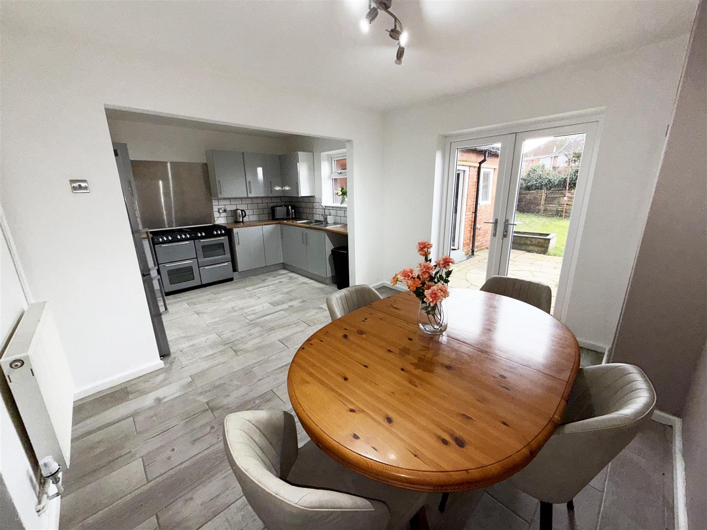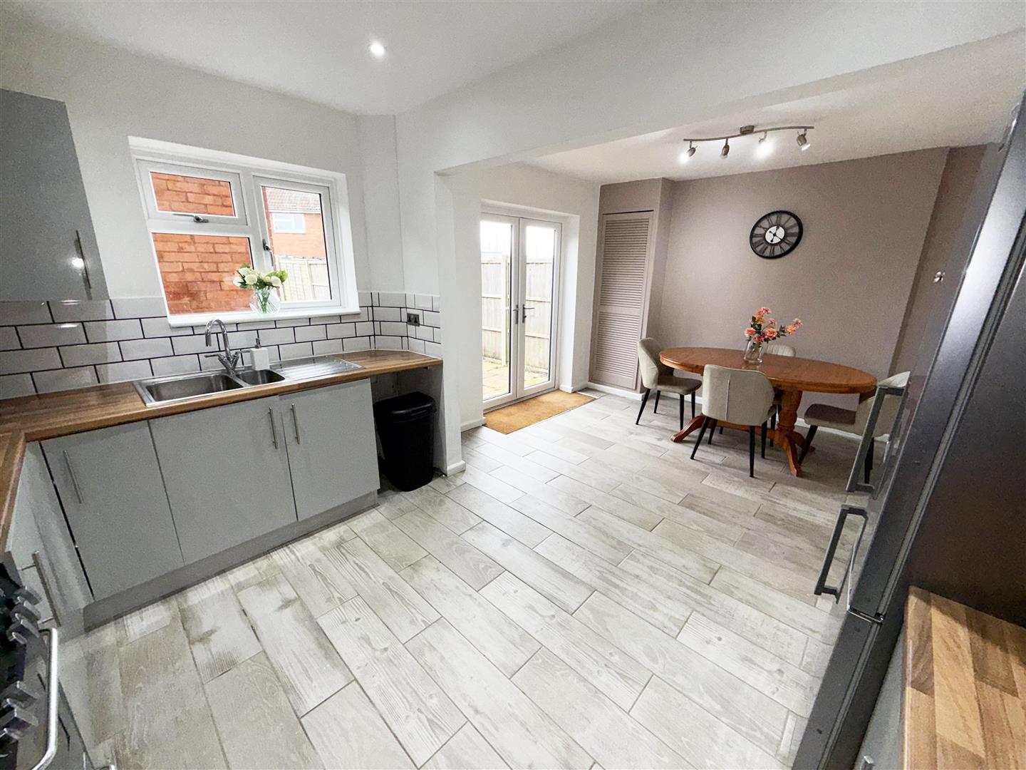Double glazed window to rear aspect. Fitted with a matching range of wall, drawer and base units with roll top work surfaces over and stainless steel sink and drainer unit inset. Freestanding 'Range' style cooker with stainless steel splashback. Space for fridge/ freezer, space for a washing machine. Radiator. Double glazed French doors opening onto the garden.