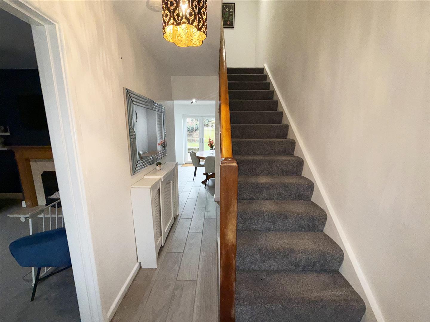 Stairs rising to first floor. Radiator. Opening to living room and opening to kitchen/ diner.