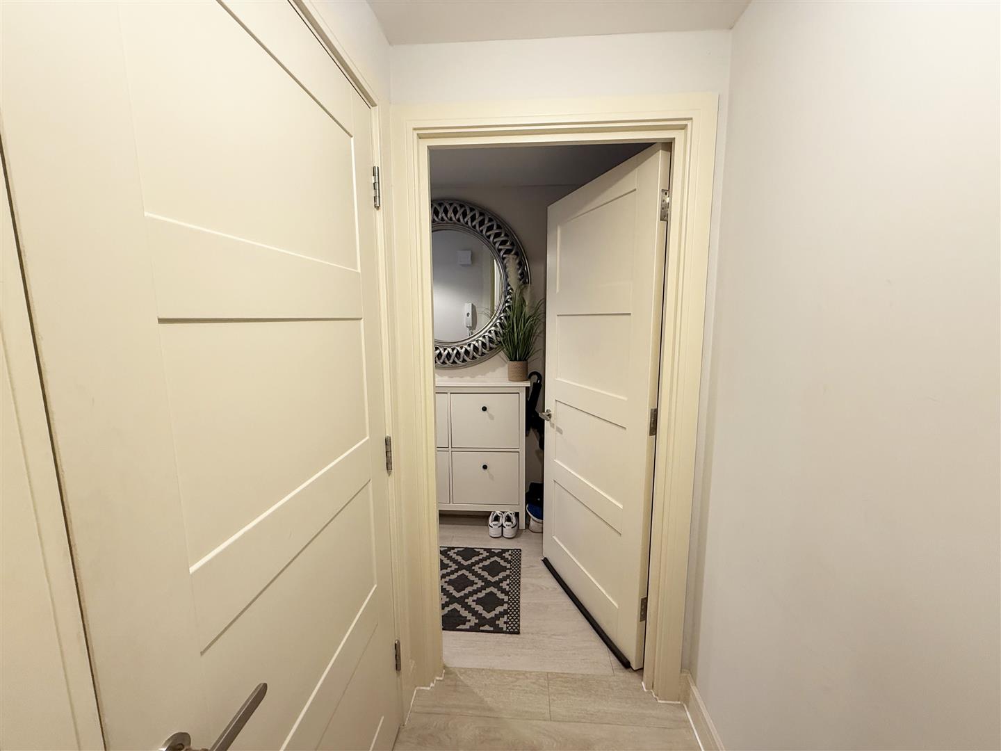 Storage cupboard, wood effect flooring, door to: