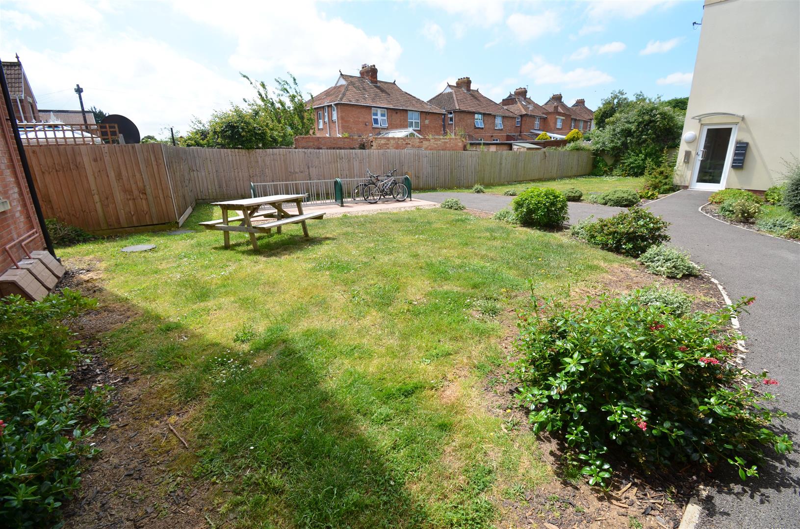 Communal gardens to the rear with bike rack and bin store.