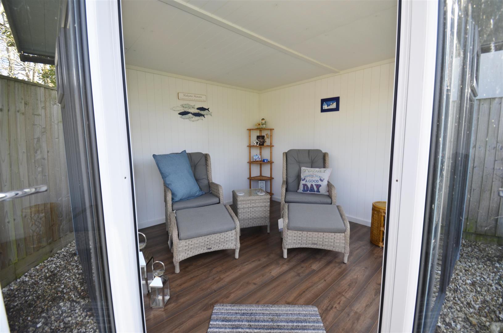 - SUMMERHOUSE & GOOD SIZE TIMBER SHED IN THE GARDEN