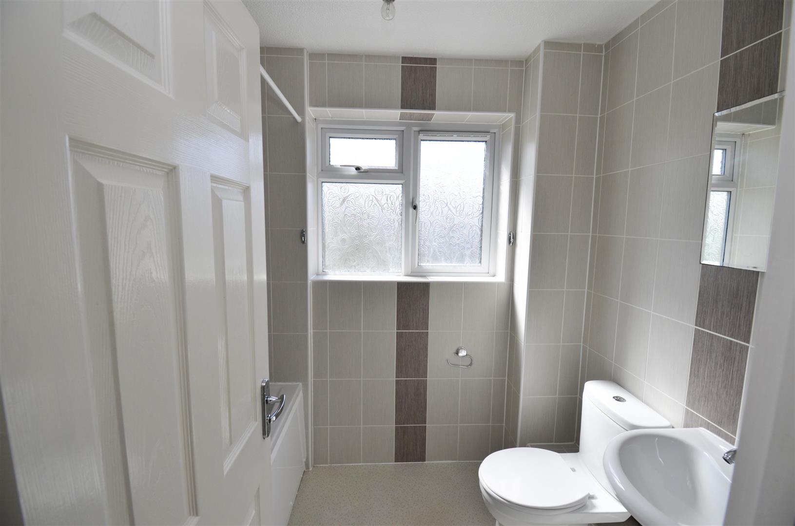 Double glazed obscure window to side aspect. Fitted with a white three piece suite comprising panelled bath with shower over. W.C and wash hand basin. Tiled walls.