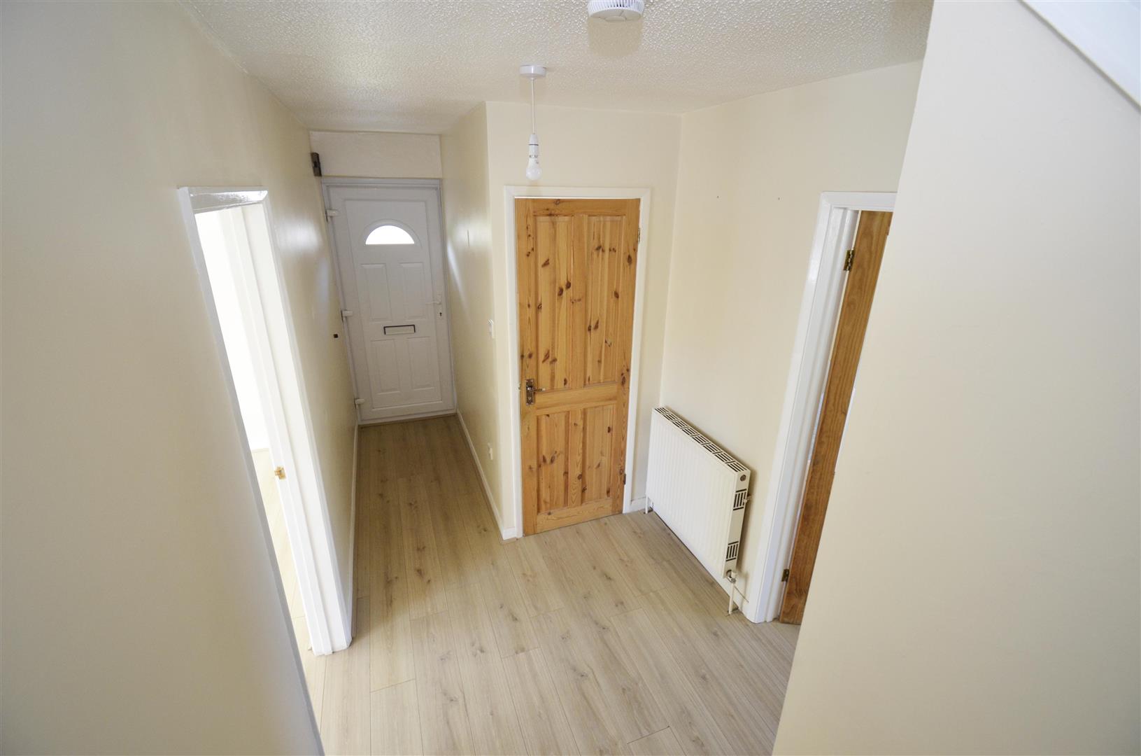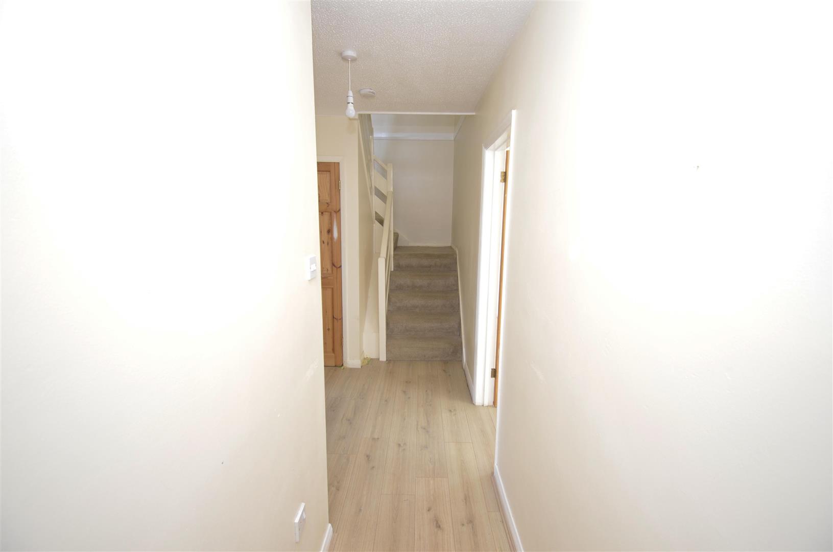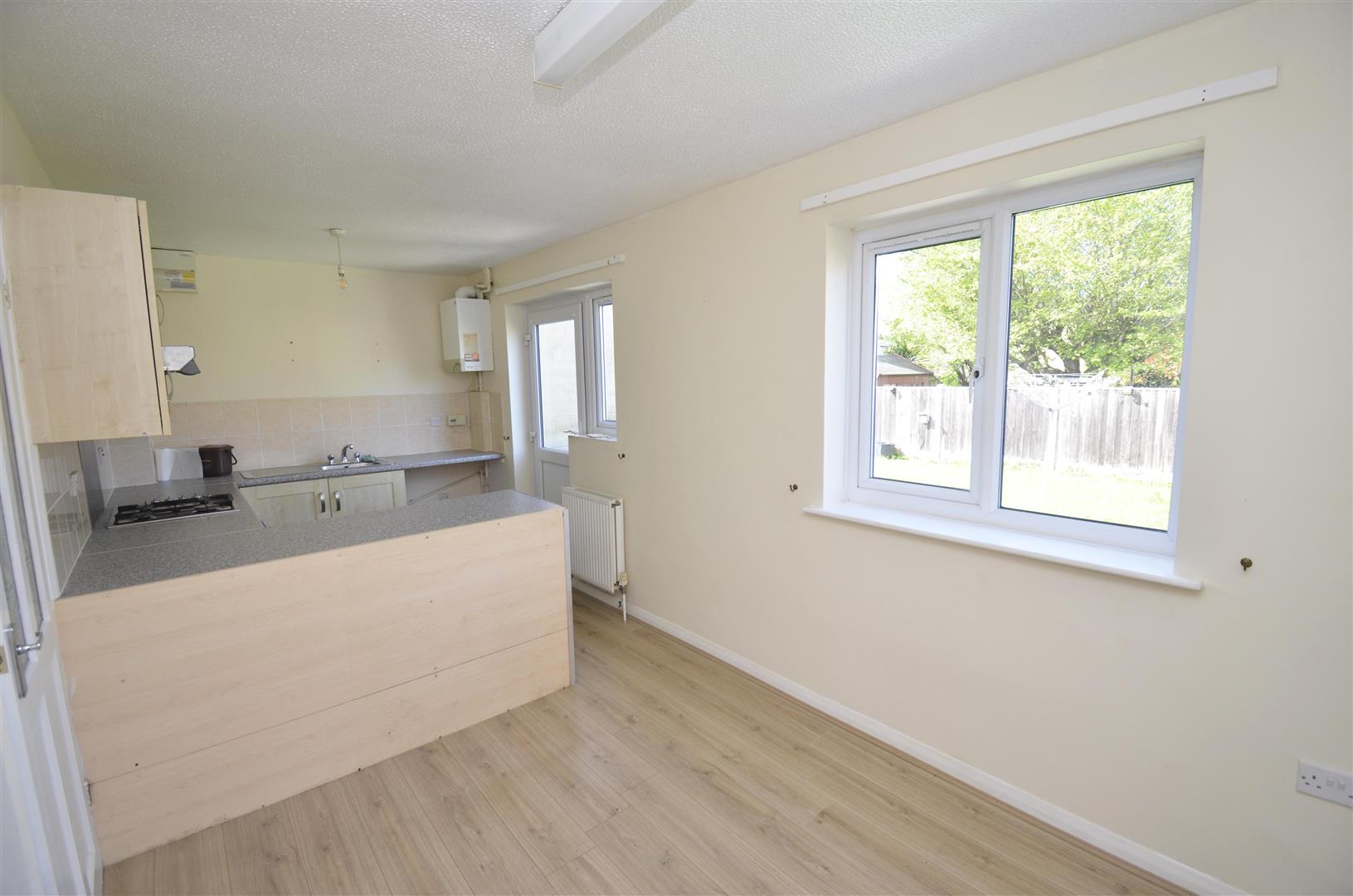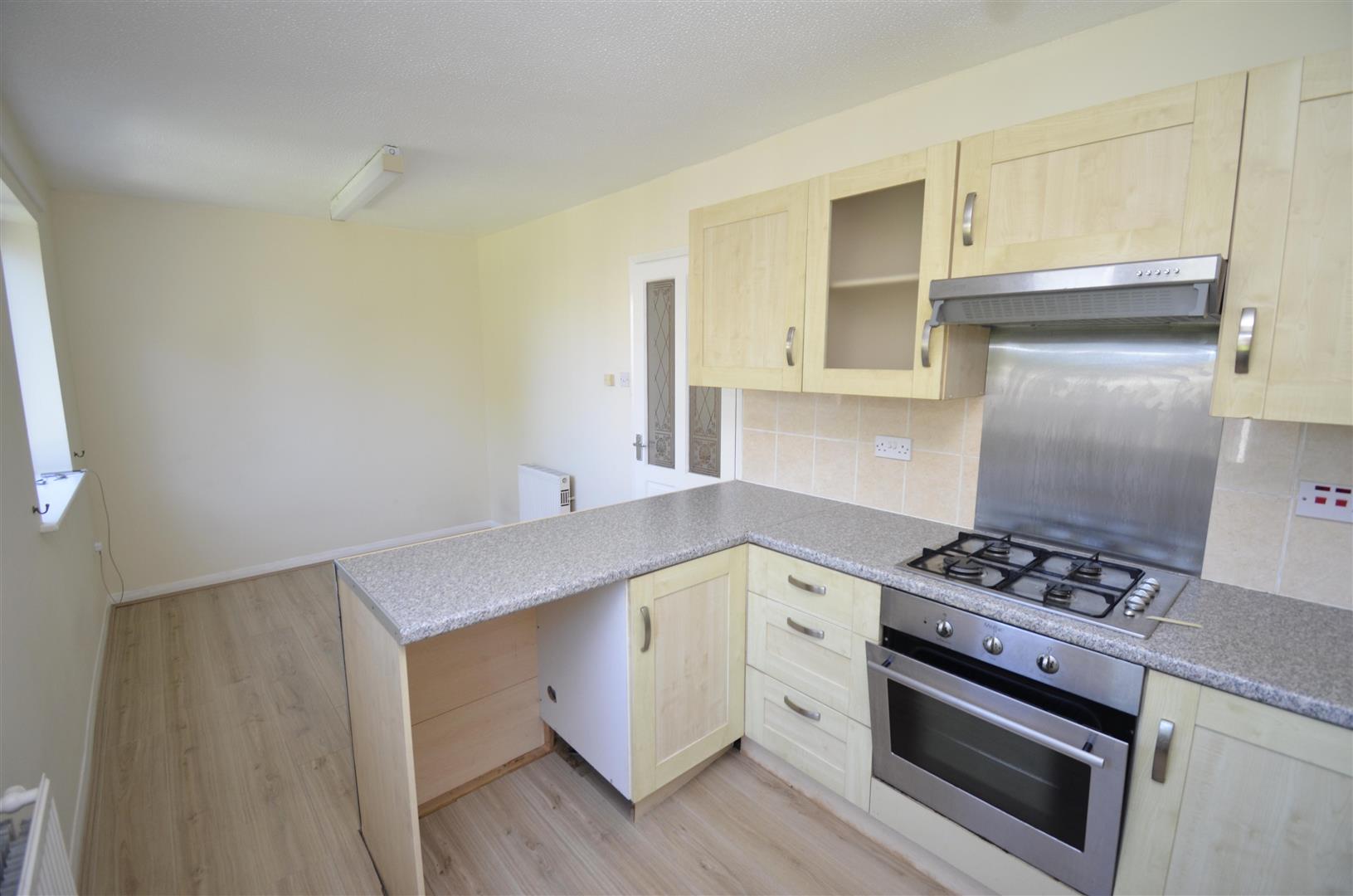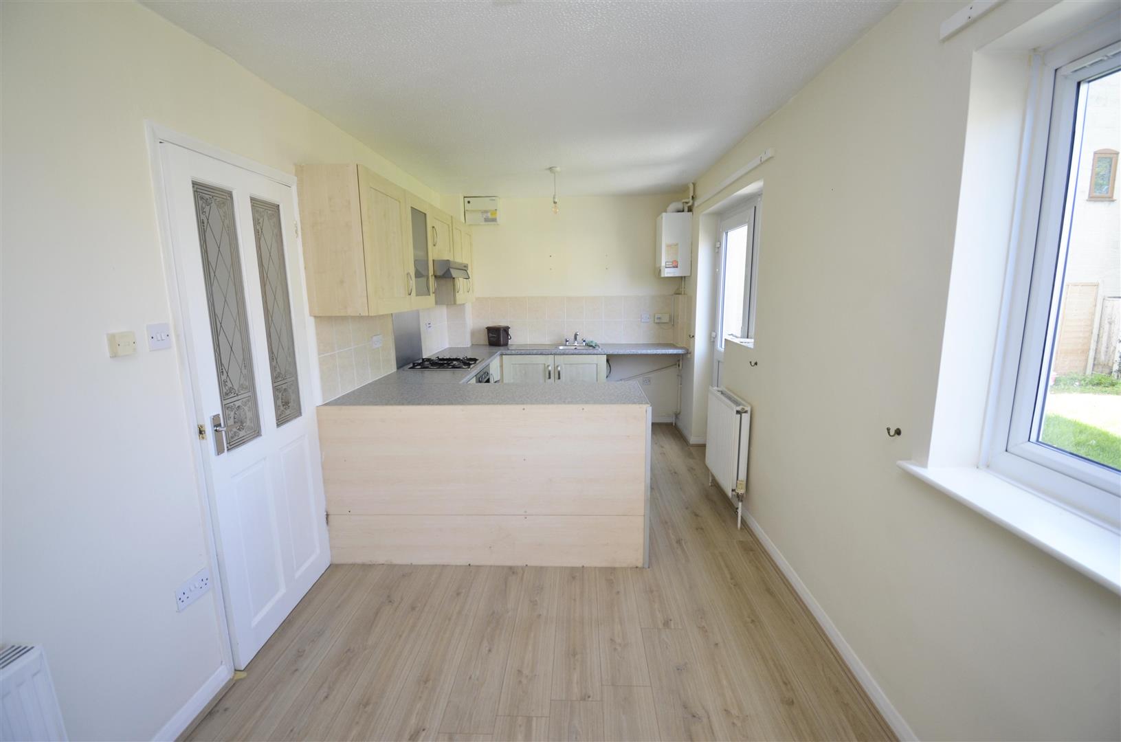 Two double glazed windows to rear aspect. Fitted with a matching range of wall, drawer and base units with roll top work surfaces over and sink and drainer unit inset. Tiled splashbacks. Integrated oven with gas hob and extractor over. Space for a fridge, space for a washing machine. Radiator, wood effect flooring. Double glazed door to the garden.