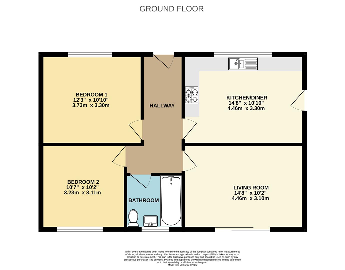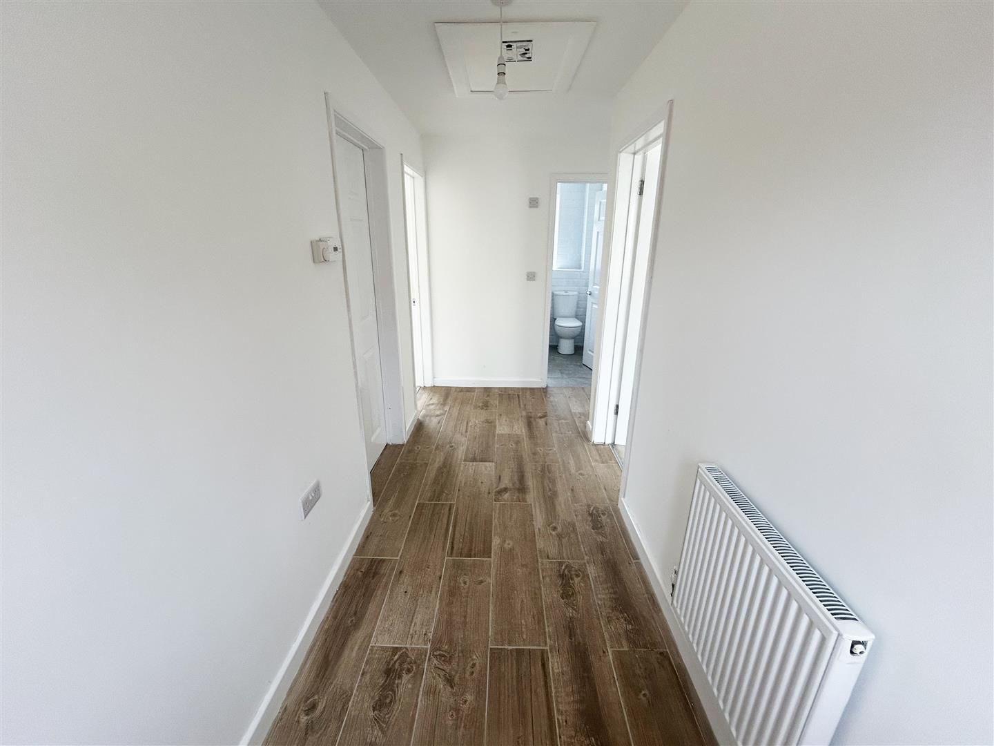 Doors to kitchen/ diner, living room, bedrooms and bathroom. Radiator, wood effect flooring.
