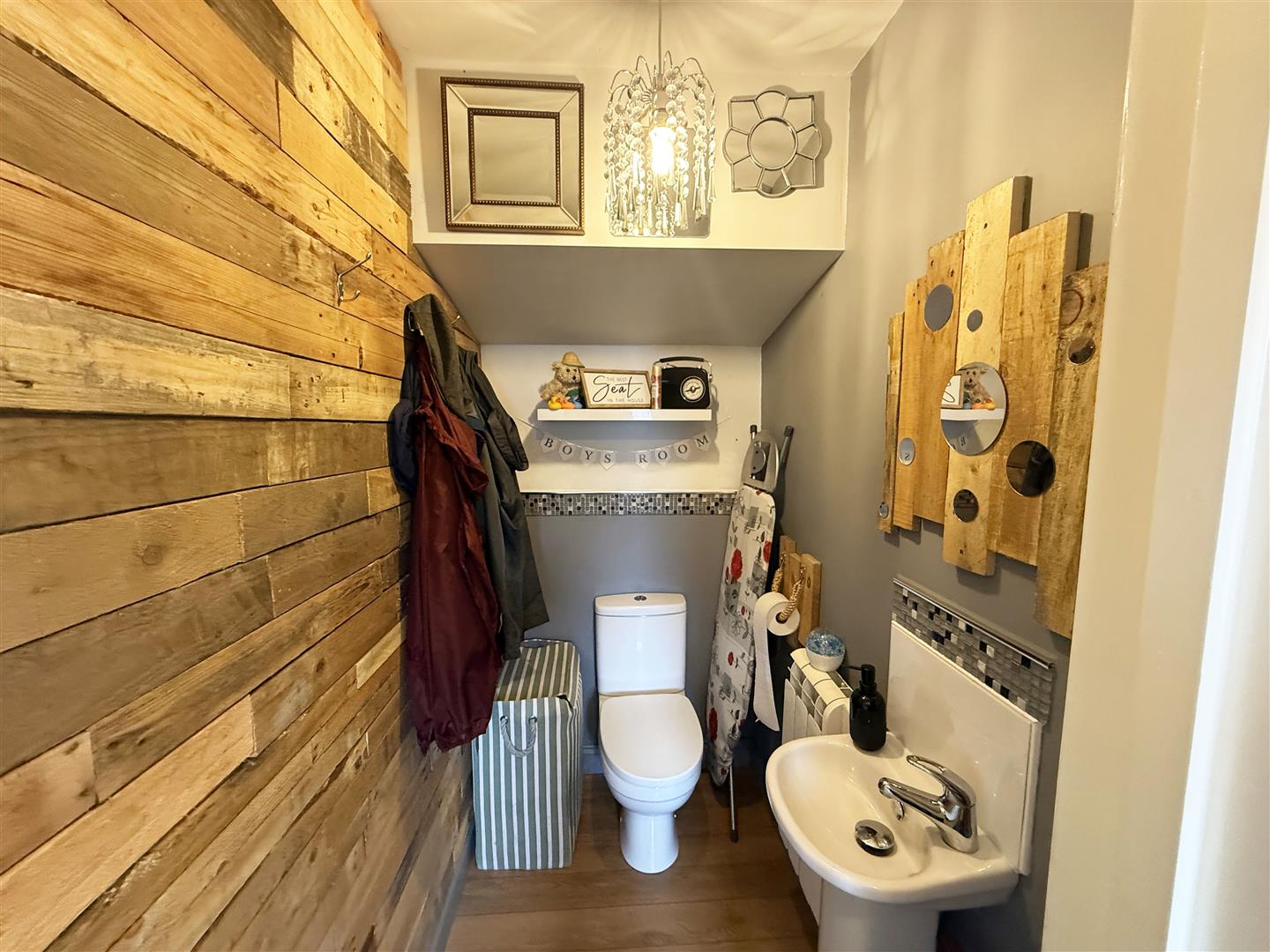Fitted with a two piece suite comprising W.C and wash hand basin. Wooden flooring.